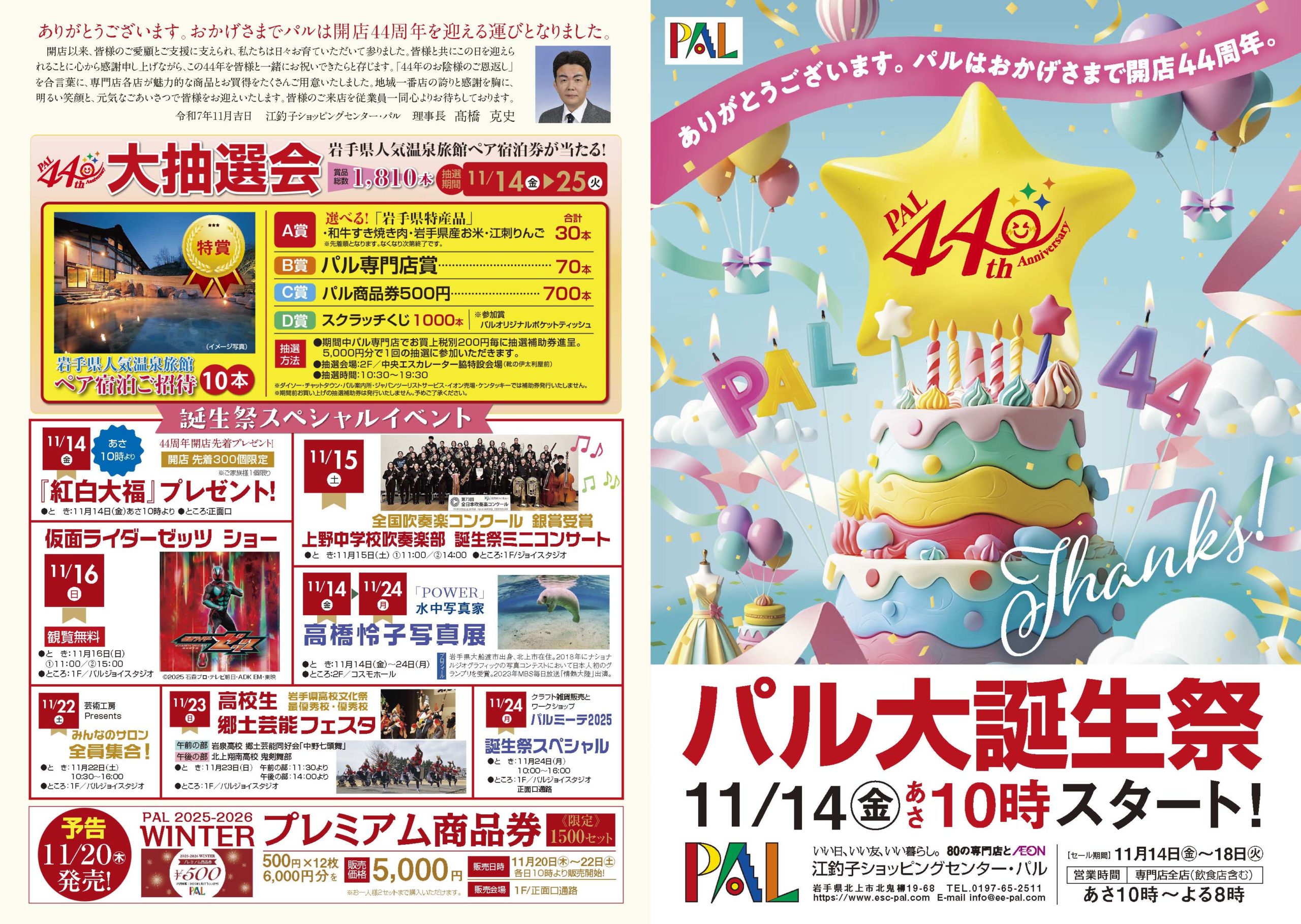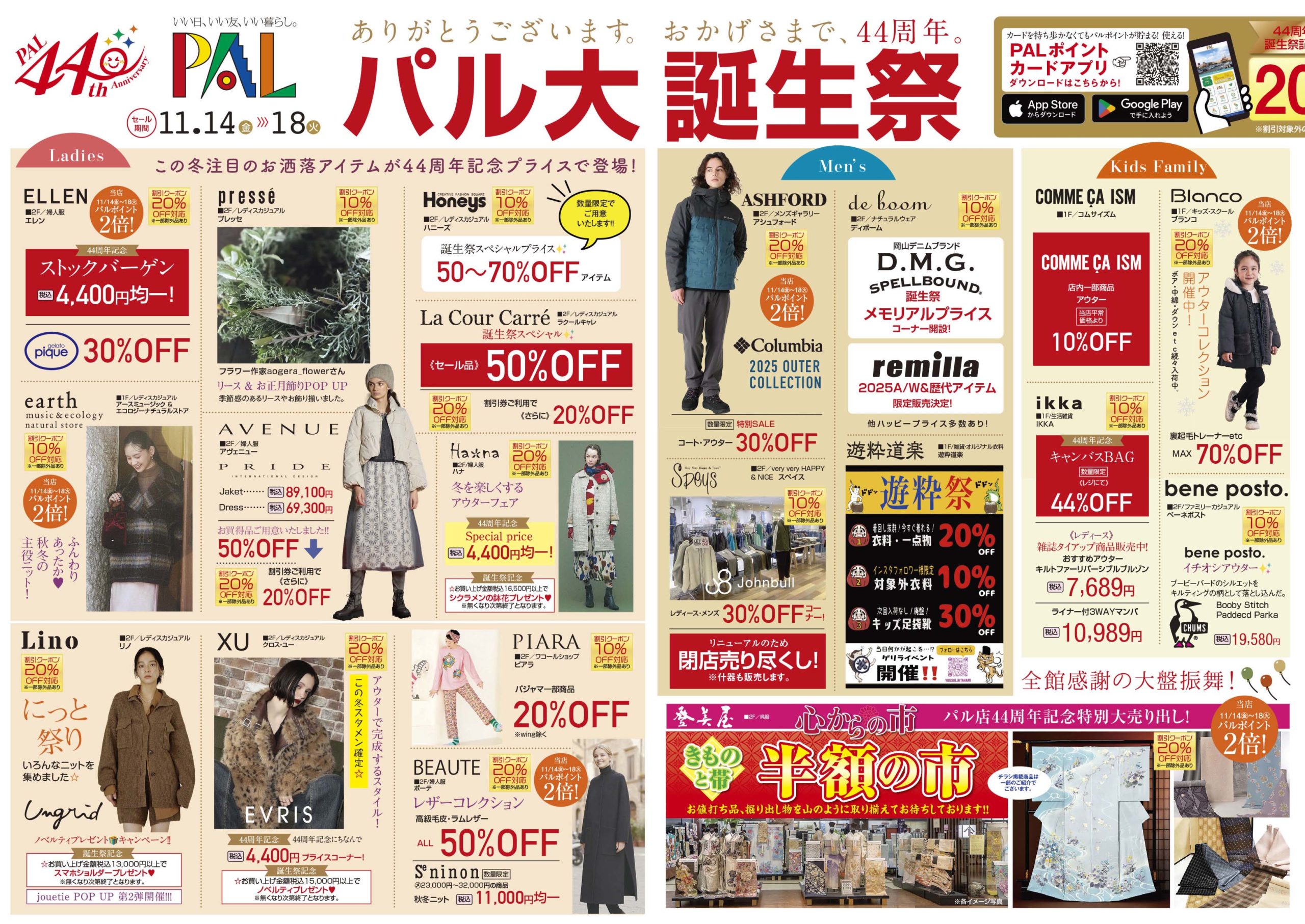 パルはおかげさまで44周年!パル大誕生祭11月14日(金)あさ10時スタートです!