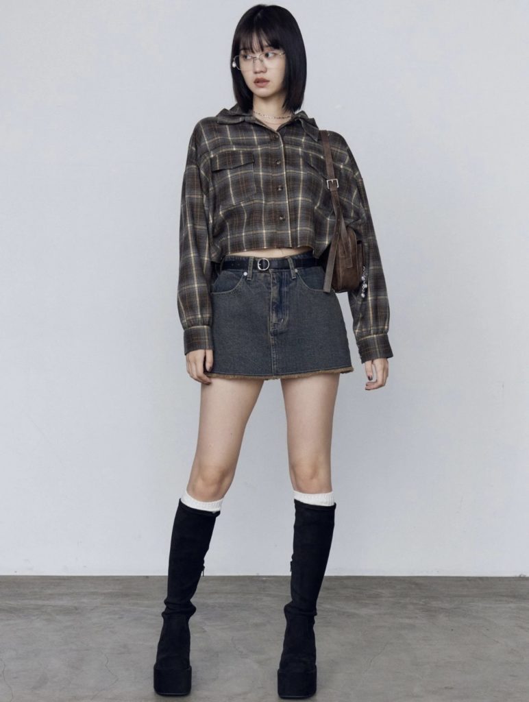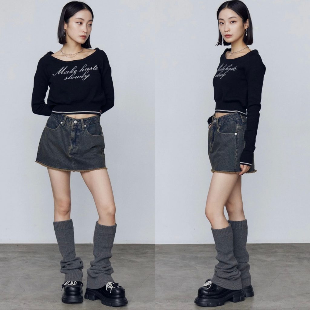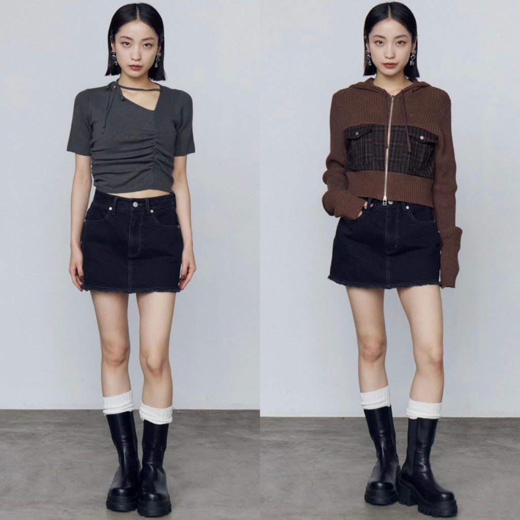 EMODAっぽくロングブーツ合わせもオススメです。