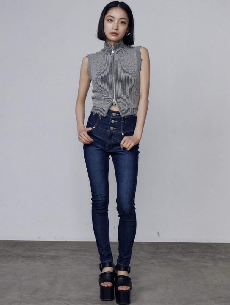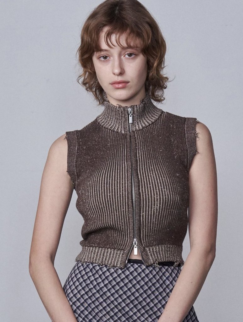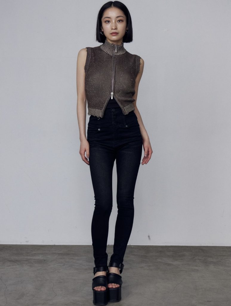 - 【EMODA】プレーティングクラッシュリブニットタンクトップ