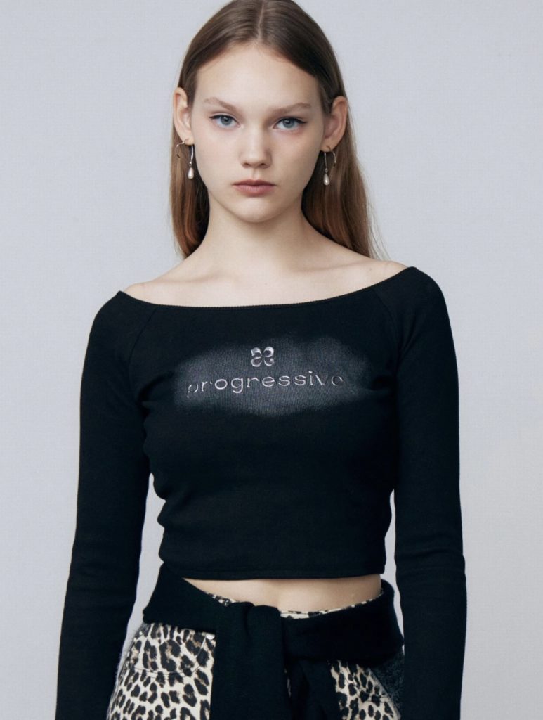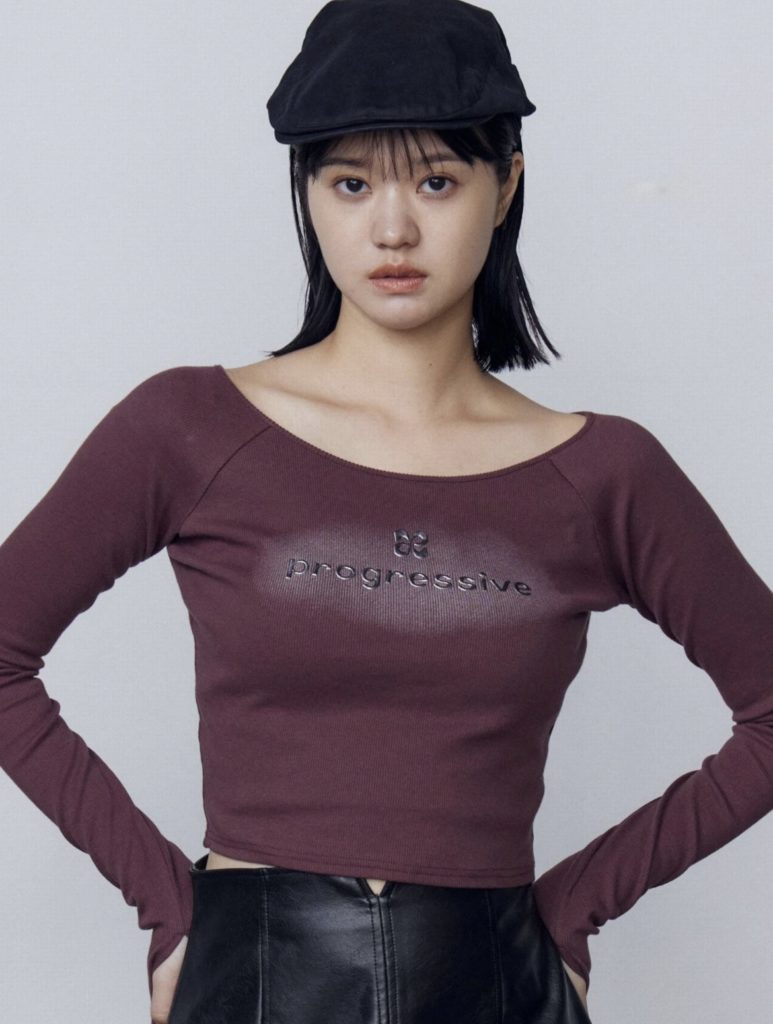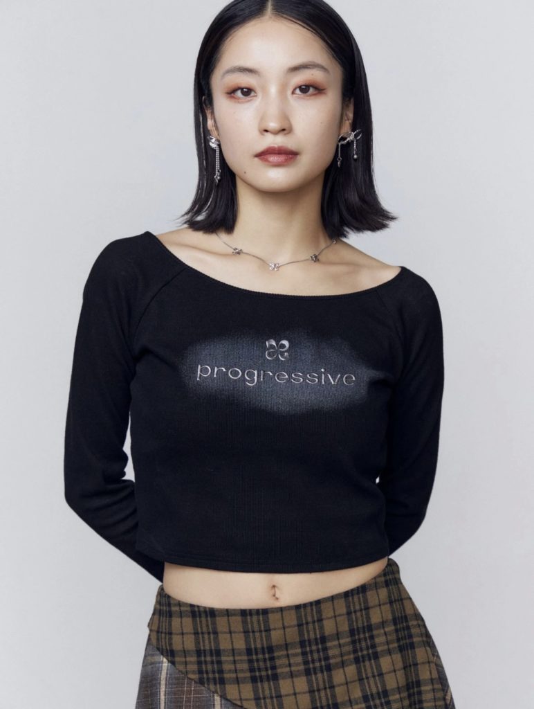 - 【EMODA】ロゴクロップドロングスリーブTシャツ