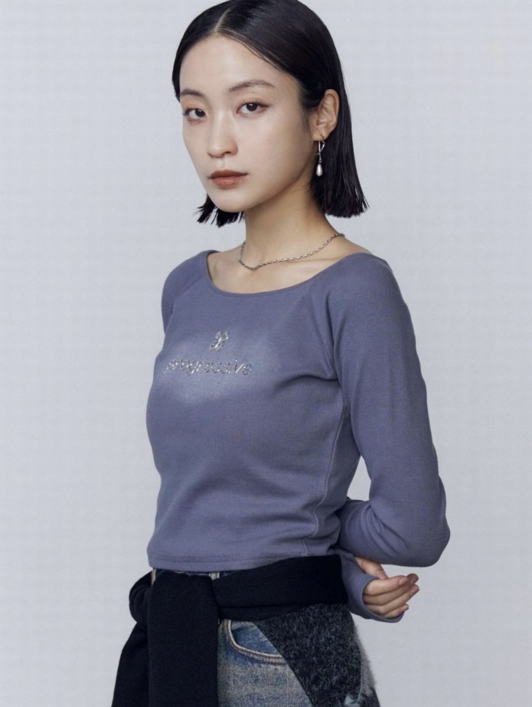 ポイントにしたロングスリーブトップス。