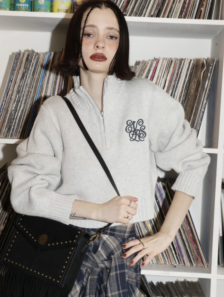 - 【EVRIS】ワンポイントハーフジップショートニットトップス