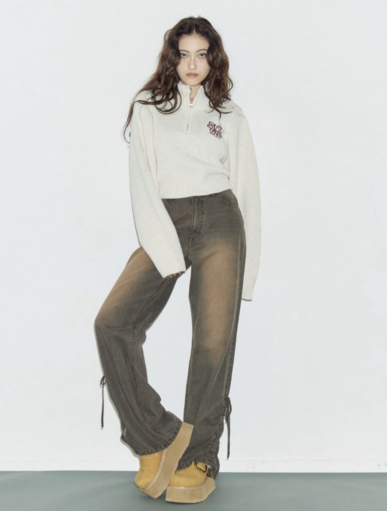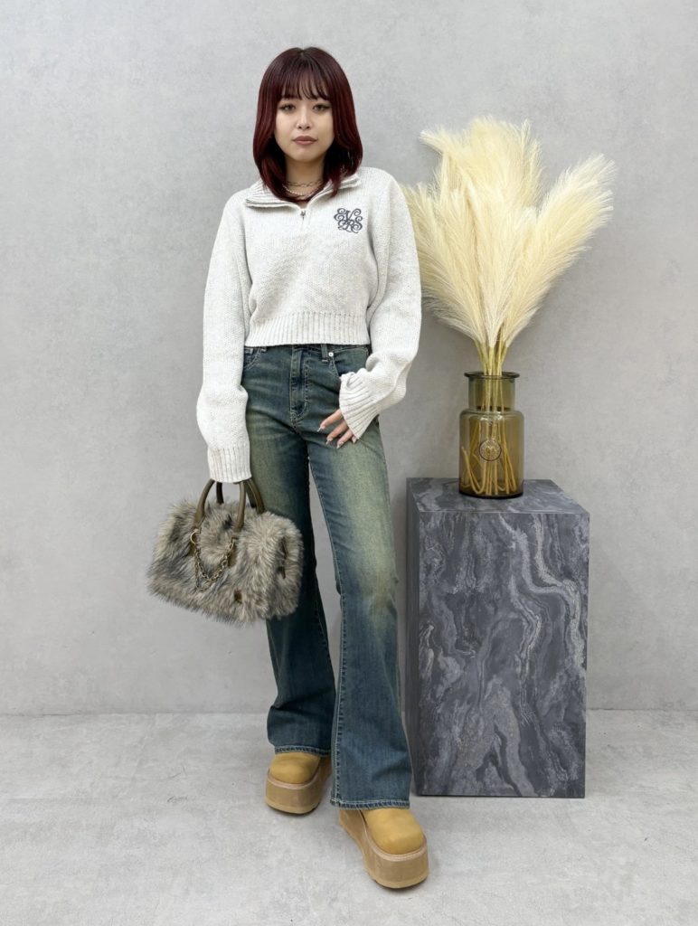人気のハーフジップニット。