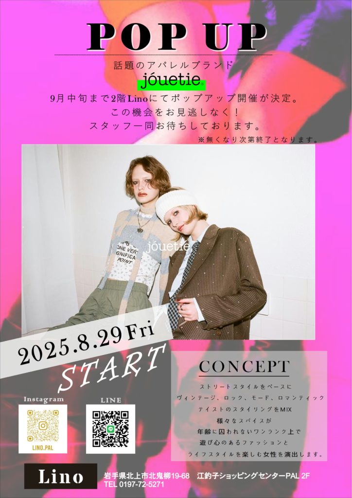PAL2階 Lino店舗内開催期間⇨8月29日(金)~9月中旬までの期間限定