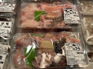冬の鮮魚コーナーといえば、ナメタガレイ、真鱈のたらこ、そして今シーズン初入荷のアンコウ。切身とアンコウの肝のパックです。出汁も肝も美味しいので、鍋や味噌汁がおすすめ。こちらは只今、鮮魚コーナーで販売しております。
