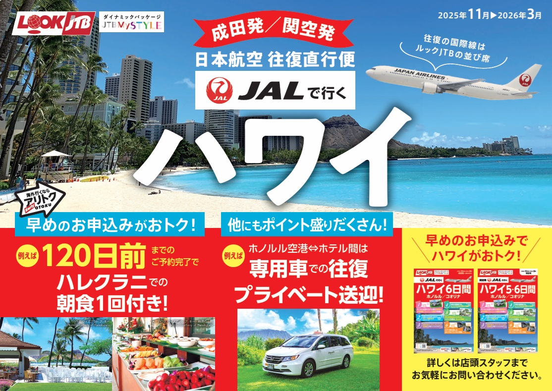 成田空港発着🌴『JALで行くハワイ6日間』🌴