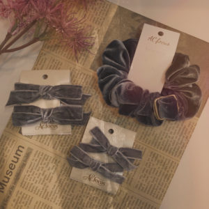 ベロア素材のシュシュ&ヘアクリップ