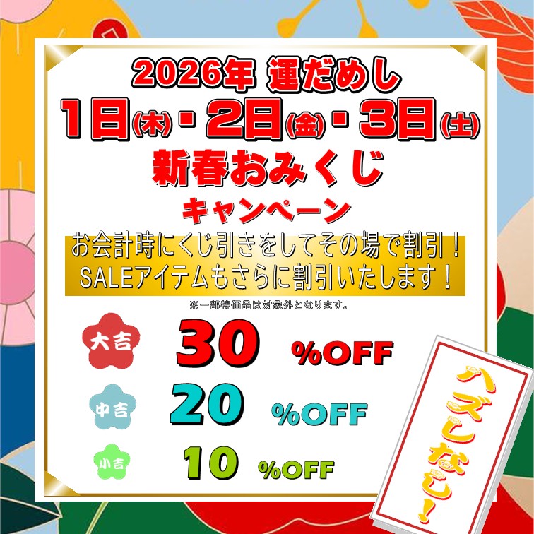 大吉⇒30%OFF 中吉⇒20%OFF 小吉⇒10%OFF