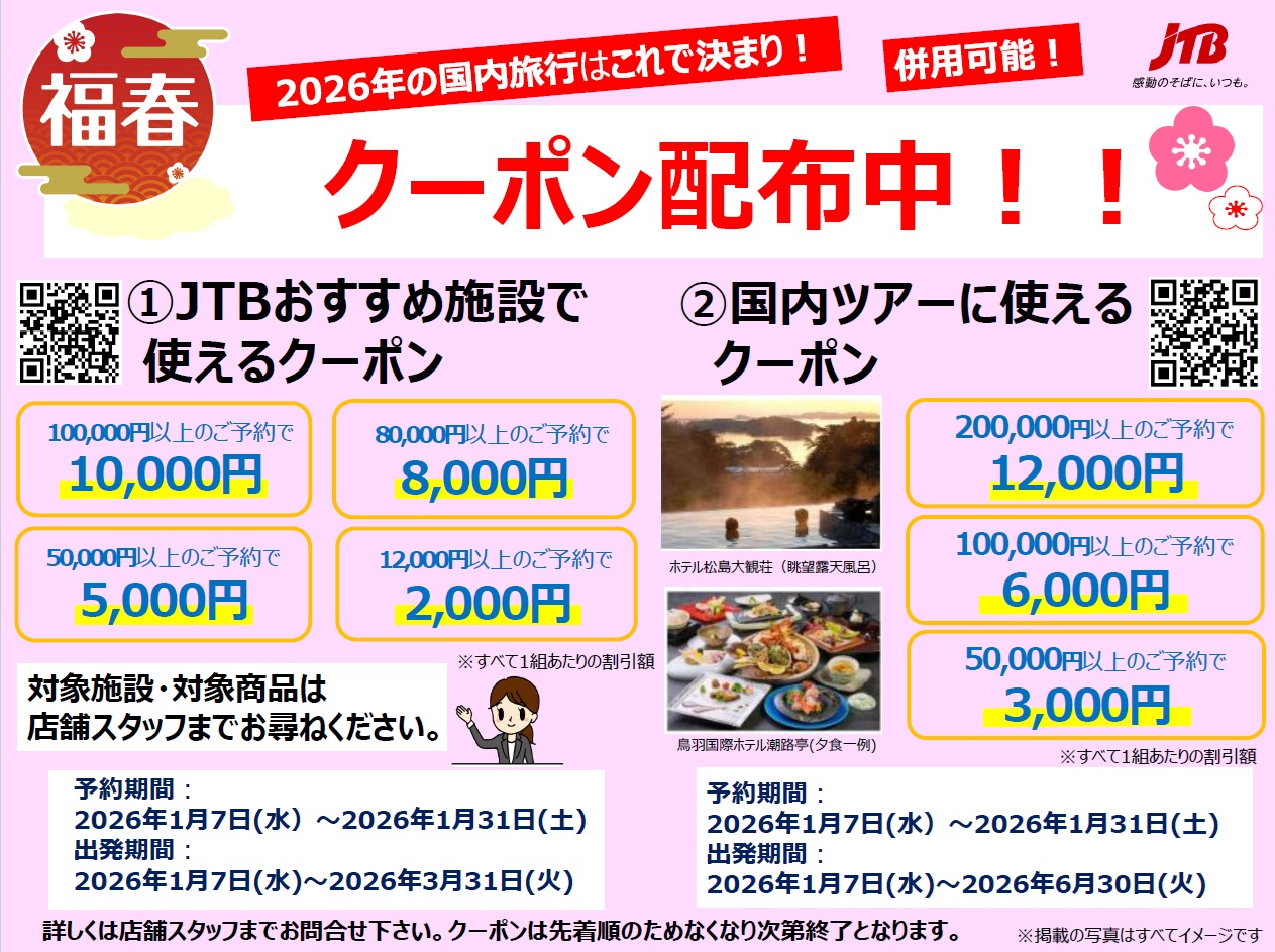 - 国内旅行のお得なクーポン配布中!