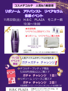 コスメデコルデ”人気No.1美容液 リポソームセラム”をご体感していただけるイベントです💜🤍💜