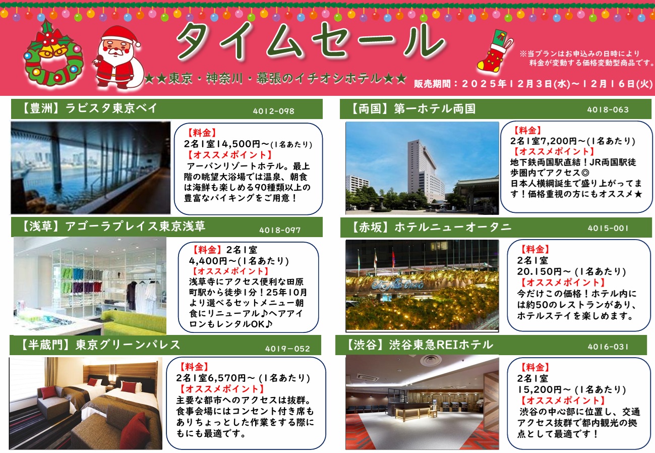 国内タイムセール商品 首都圏のホテルを一部ご紹介✨