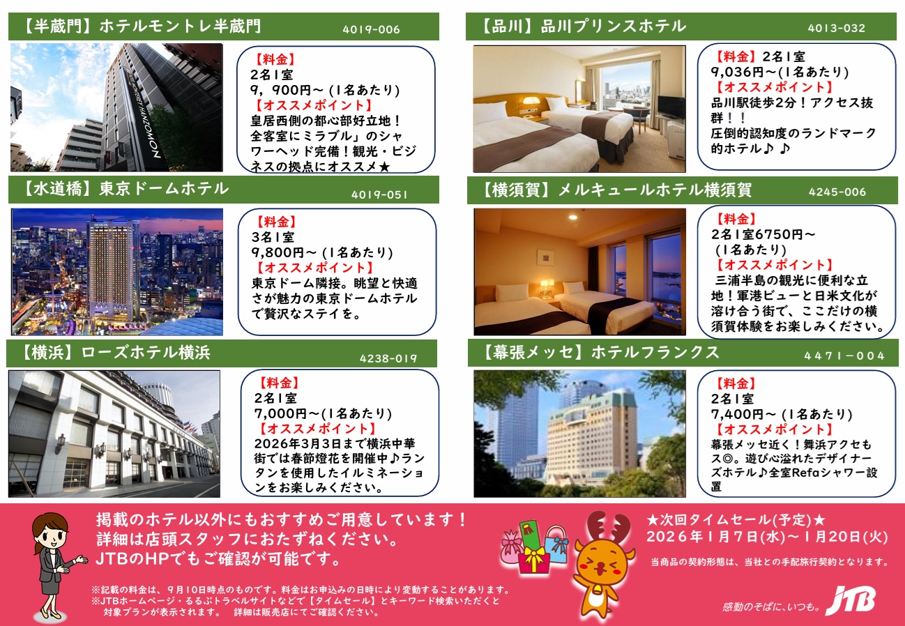 「JTB タイムセール」でWEB検索してください🎶