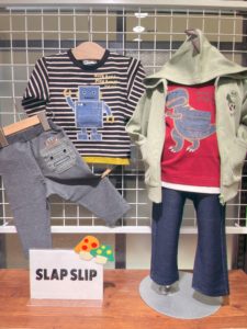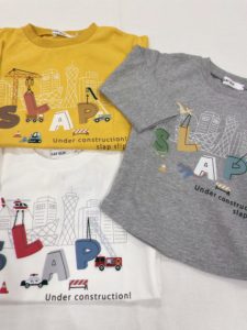 裾は配色の切り替えになっていて、重ね着っぼく見えるデザインのロンTシャツ🦕