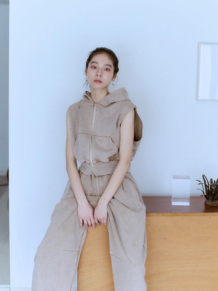 ・ヴィンテージウォッシュジップノースリパーカー ¥11,000円 (税込)