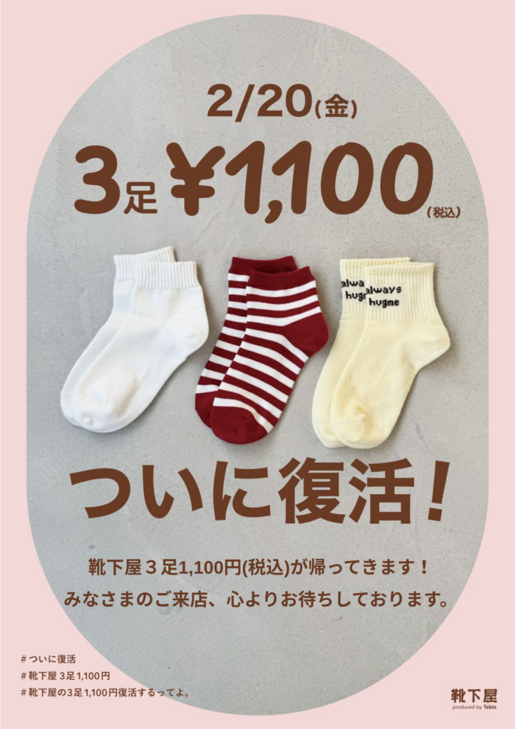 靴下屋のレディース3足1100円商品が3年ぶりに帰ってきます!
