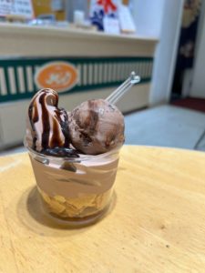 チョコソフトにチョコソース!ミニガトーショコラアイスがのったチョコづくしのブラックサンデー!