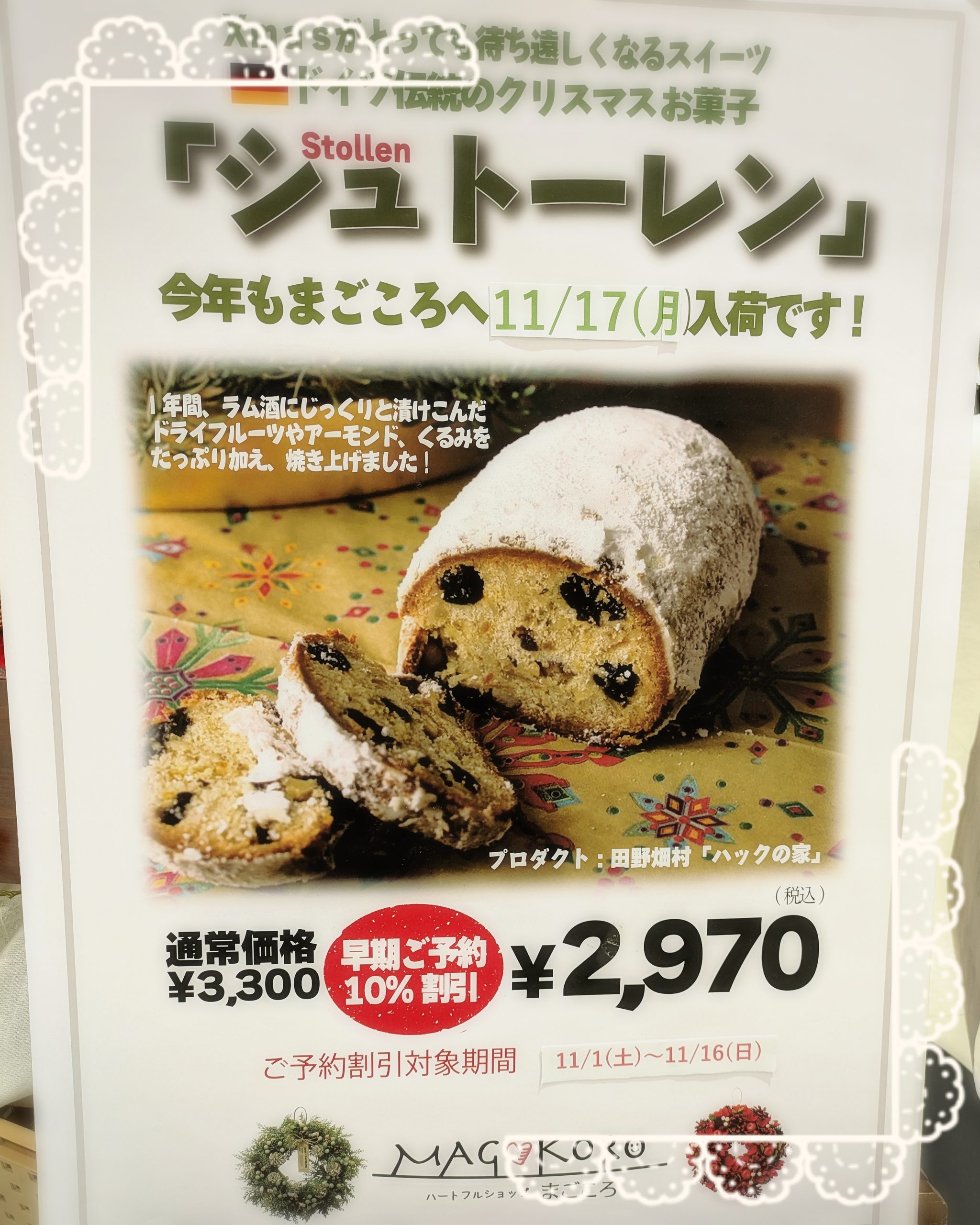 - 早割は11月16日まで❣️ハックの家「シュトーレン」予約受付中✨
