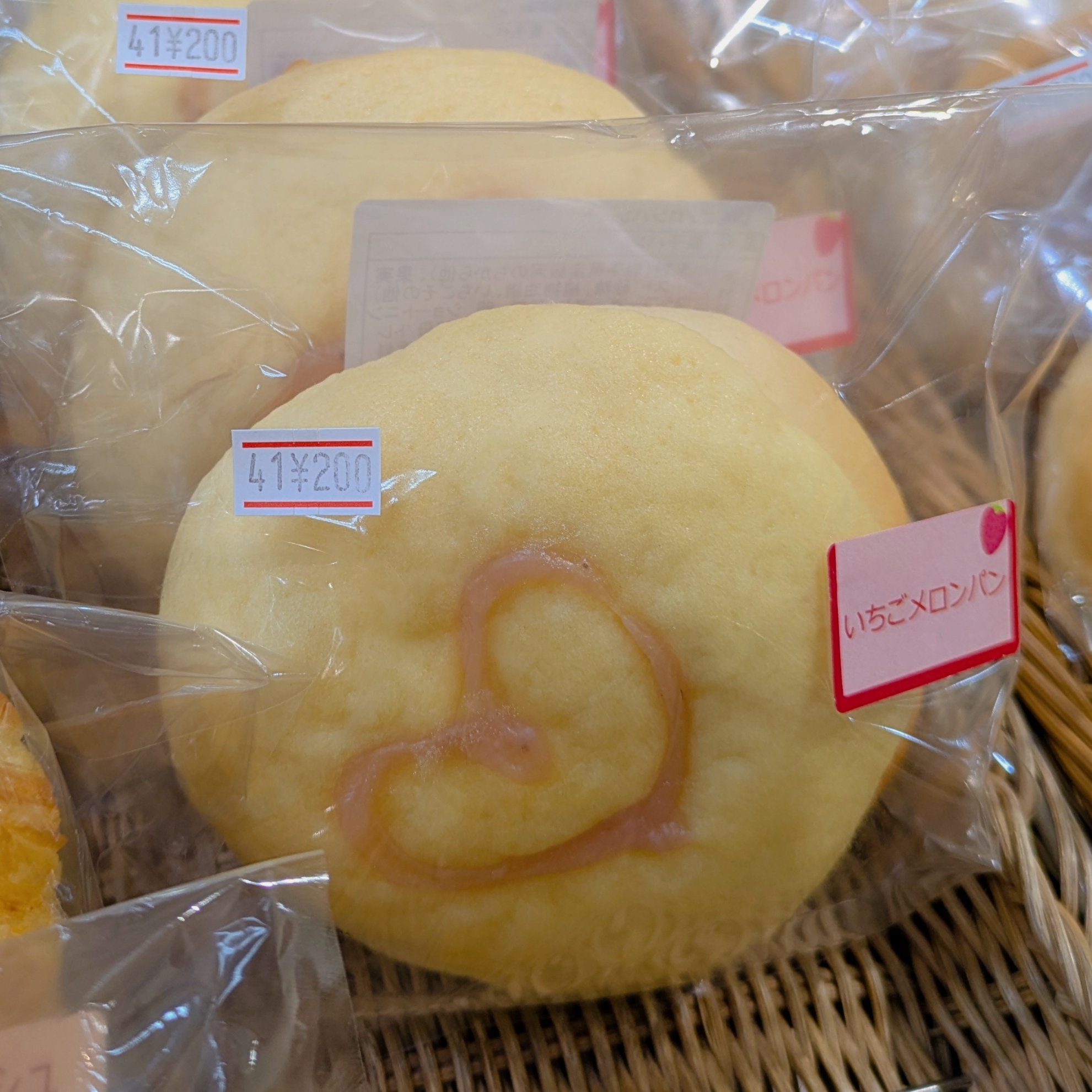 北萩寮「いちごメロンパン」200円(税込)可愛いハートが目印🎶人気のメロンパンシリーズにいちご🍓が出ました✨