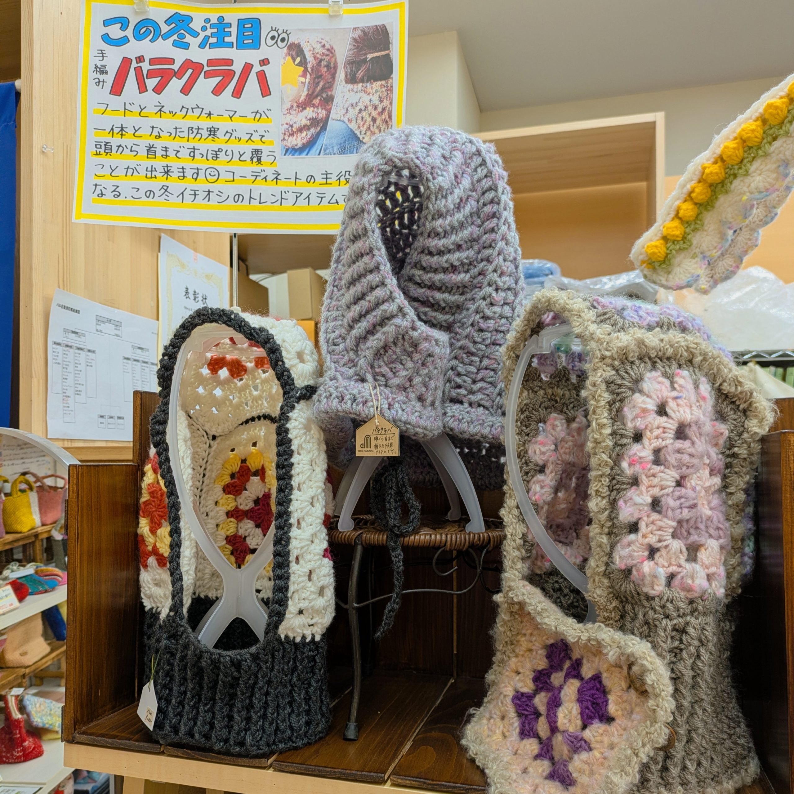 そんな寒い冬のお供にぴったりのあったかい手編みグッズをレジ前のコーナーにて販売中です☺️✨