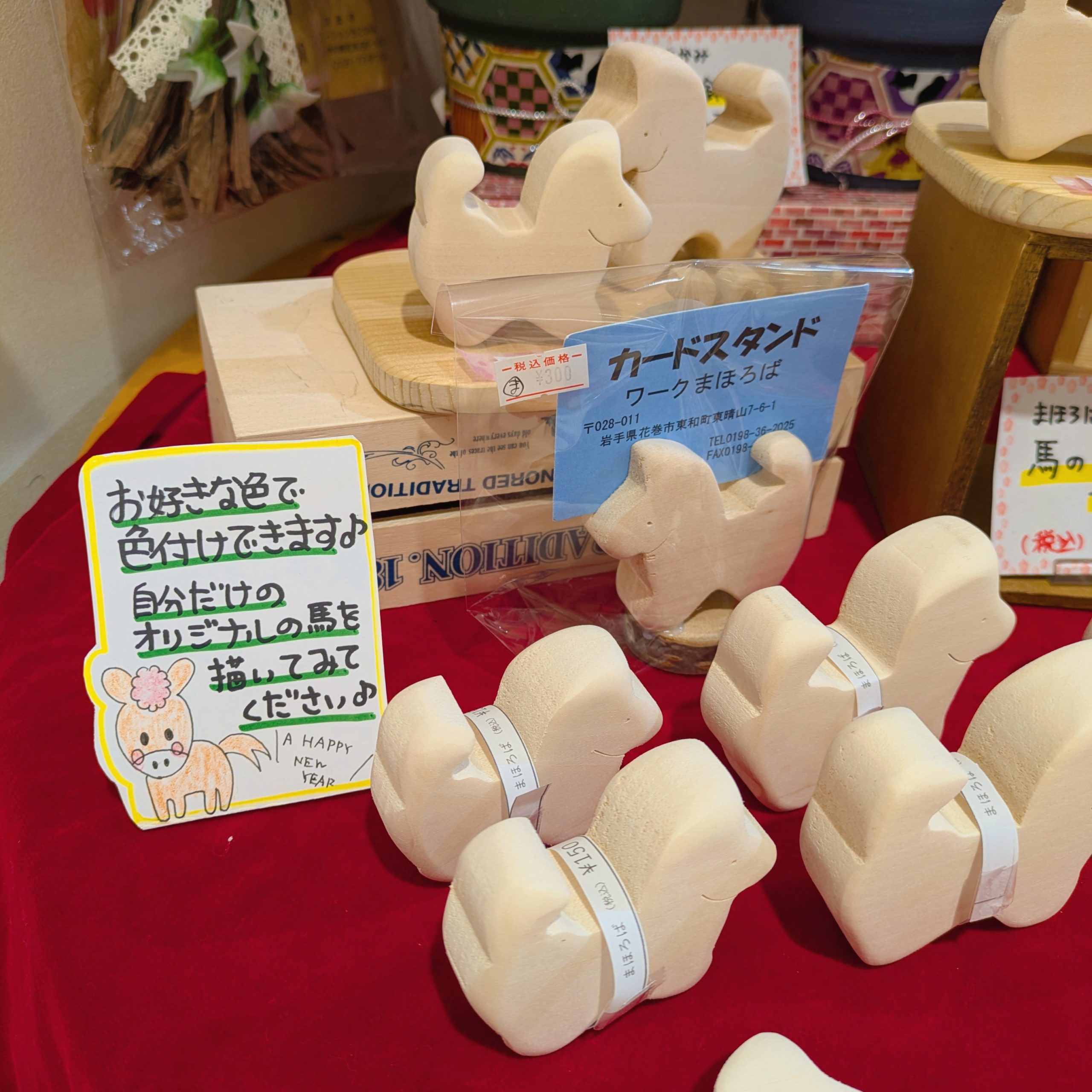 ワークまほろば「木工品・馬の置物2026」800円(税込)「木のおもちゃ」150円(税込)
