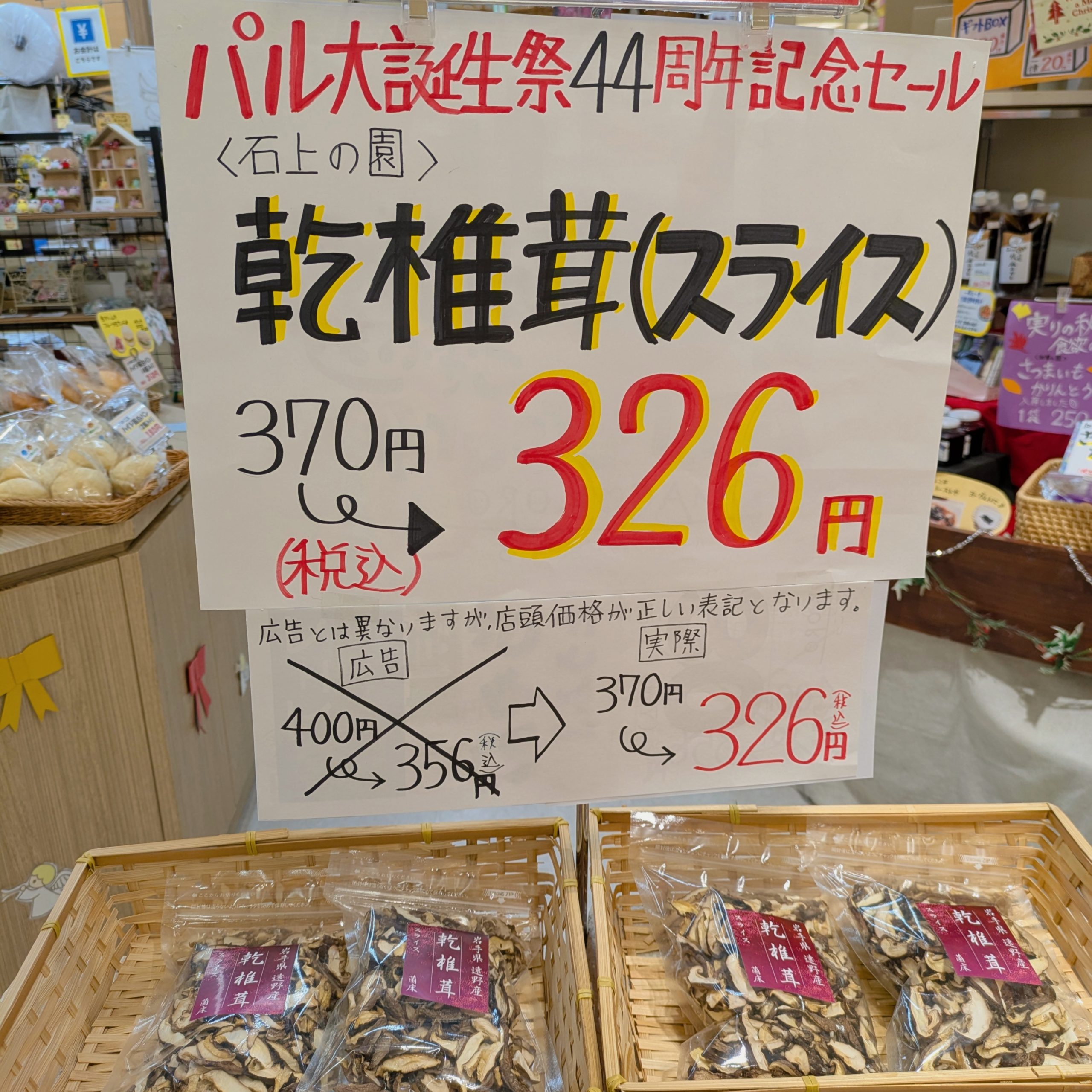 どちらも広告掲載価格よりお安くなっています😳‼️また「乾椎茸(スライス)」は初日から売行き好調で、残り少なくなってまいりましたので、お早めにご来店いただければと思います💦