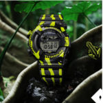 カエルのわかりやすい蛍光色の縦筋がとても印象的なこのモデルの外装パーツは、実はただの脂外装ではなくCASIOこだわりの仕上げとなっています!
