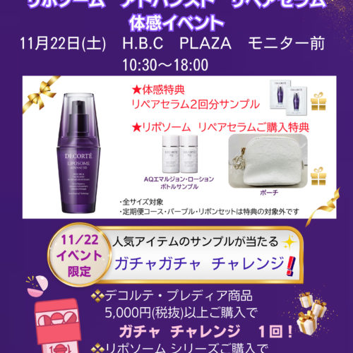 / 11月22日(土) コスメデコルテ リポソームアドバンストリペアセラム 体感…