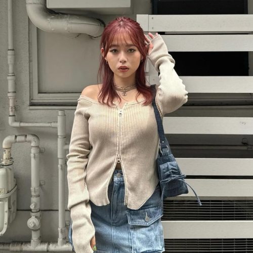 - 【EVRIS】 ピグメントジップオフショル ニットトップス ¥7,150(税込)…